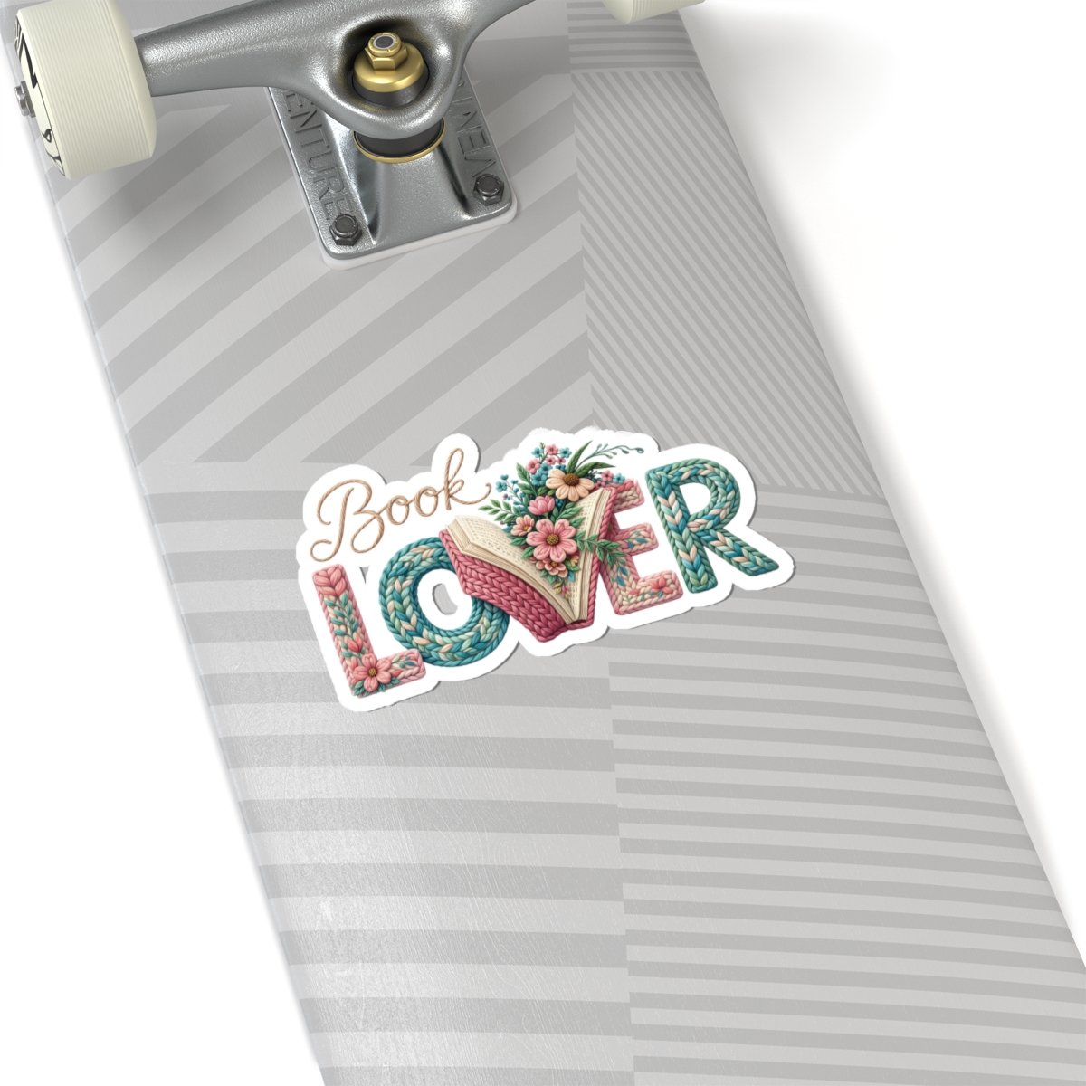 A glossy kiss-cut vinyl sticker that celebrates reading with cozy, crafted charm. The design spells “BOOK LOVER” in textured, yarn-like letters, with an open book and delicate floral accents nestled into the typography. Printed in vivid eco-solvent inks on durable vinyl, the sticker keeps its color and resists scratches while sticking smoothly to flat surfaces like laptops, journals, water-resistant phone cases, and scrapbooks. Choose a transparent or white backing and from several sizes to match your space. Application is bubble-free and straightforward — a small, delightful touch that reads like a quiet shelf-side smile.