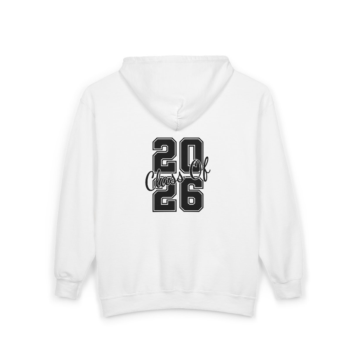 A cozy full-zip hoodie that feels familiar the moment you pull it on. The bold 2026 varsity-style numbers across the chest and back carry a nostalgic, athletic energy while the handwritten script weave adds a personal, handcrafted touch. It’s warm without being bulky, with roomy pockets for phones and wallets, and a sturdy metal zipper that stands up to daily wear. Whether you’re heading to a late-night study session, strolling campus paths, or meeting friends for coffee, this hoodie settles into your rhythm and keeps you comfortable through cooler days and crisp evenings.